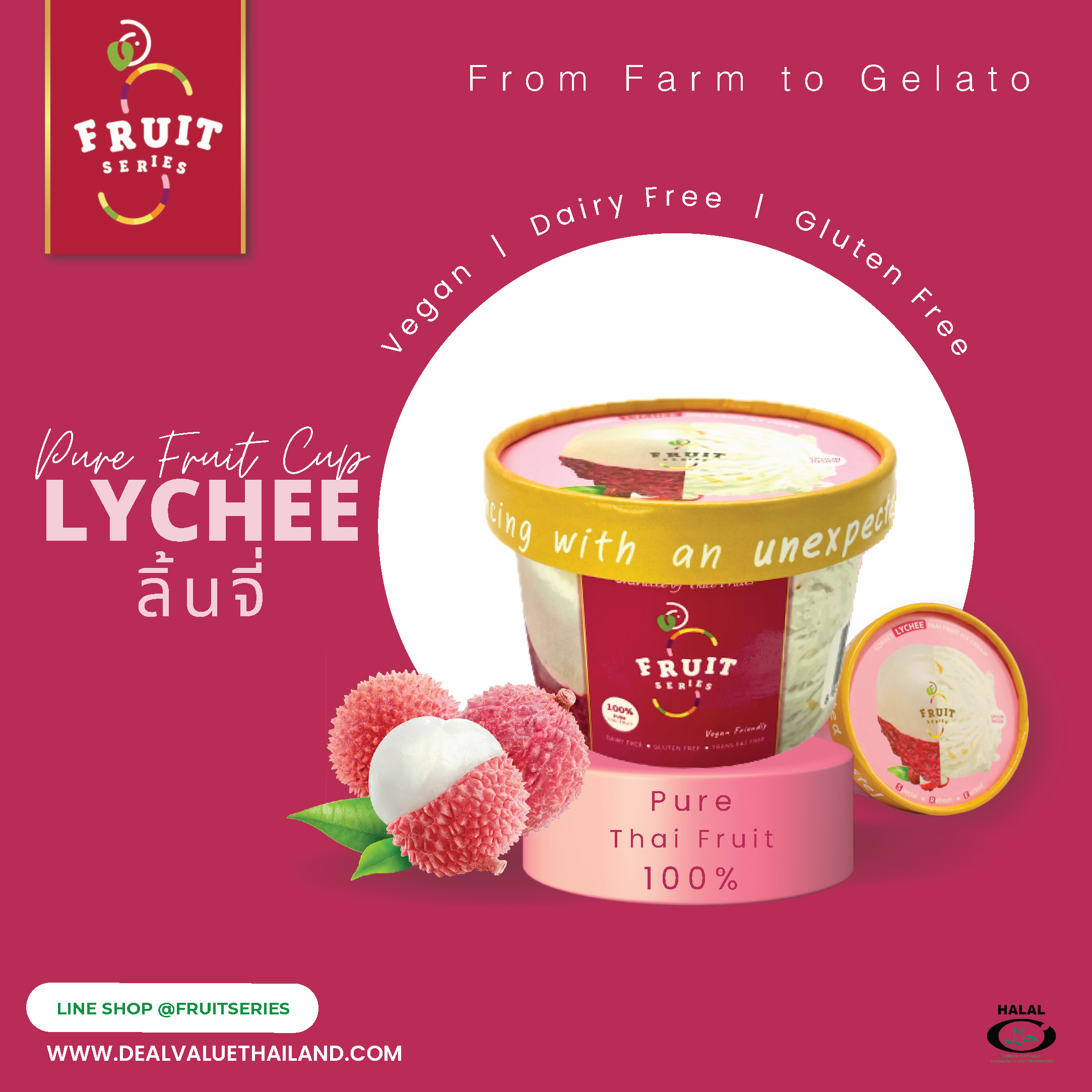100% authentic Thai fruit ice cream. Excite yourself with the unexpected taste.